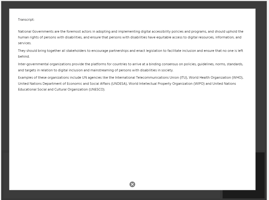 The target audience included Accessibility and Disability advocates, whose expertise and passion required a learning experience tailored to their unique needs. Central to the challenge was the need for an eLearning course that addressed the technological barriers faced by individuals with disabilities when accessing Information and Communication Technologies (ICTs). The ASG envisioned a program that would not only educate but also exemplify the principles of accessibility in its design.