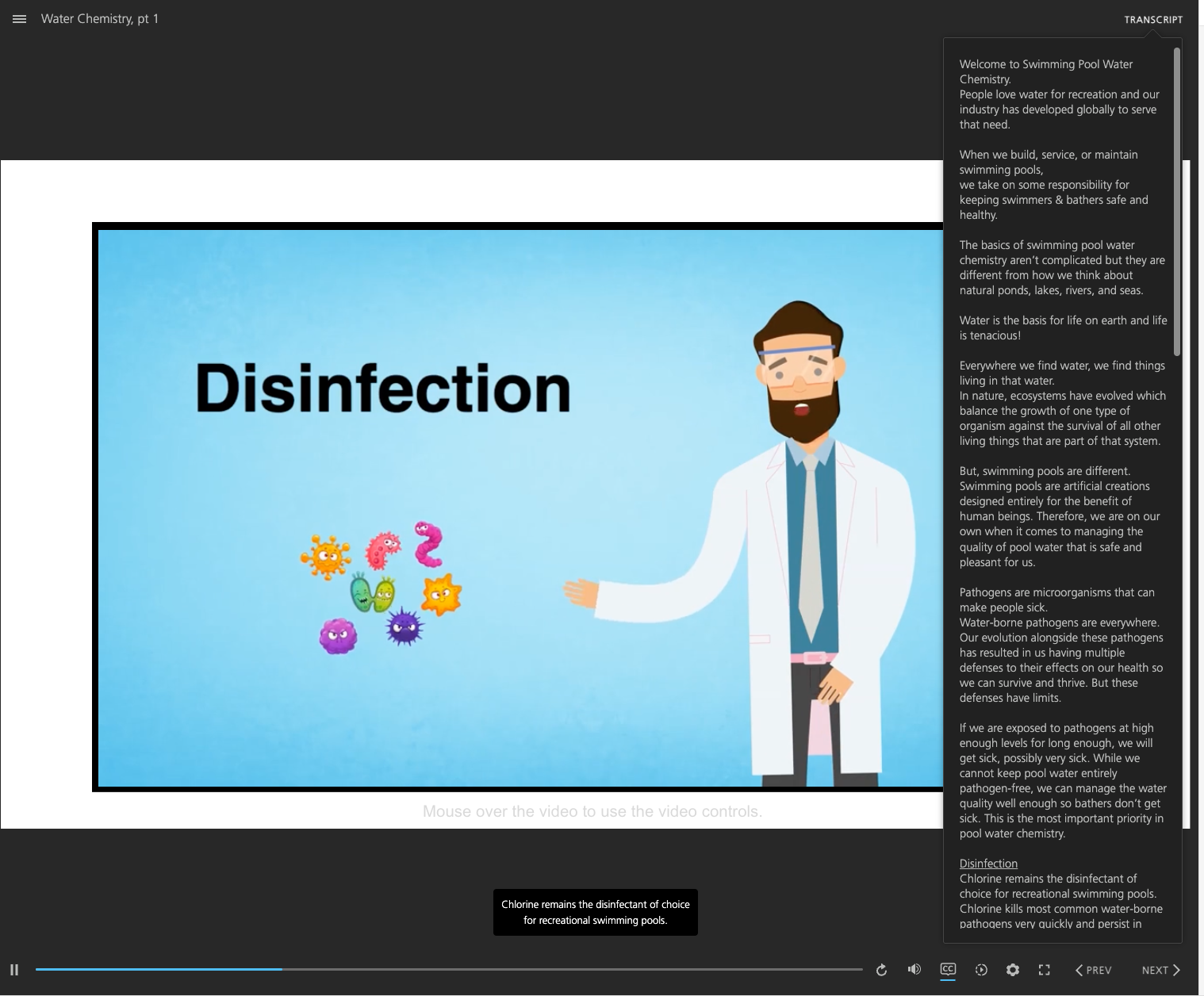 We created shortt and engaging training experiences that introduce learners to water disinfection, safety, and the unique chemistry needs of recreational pools.